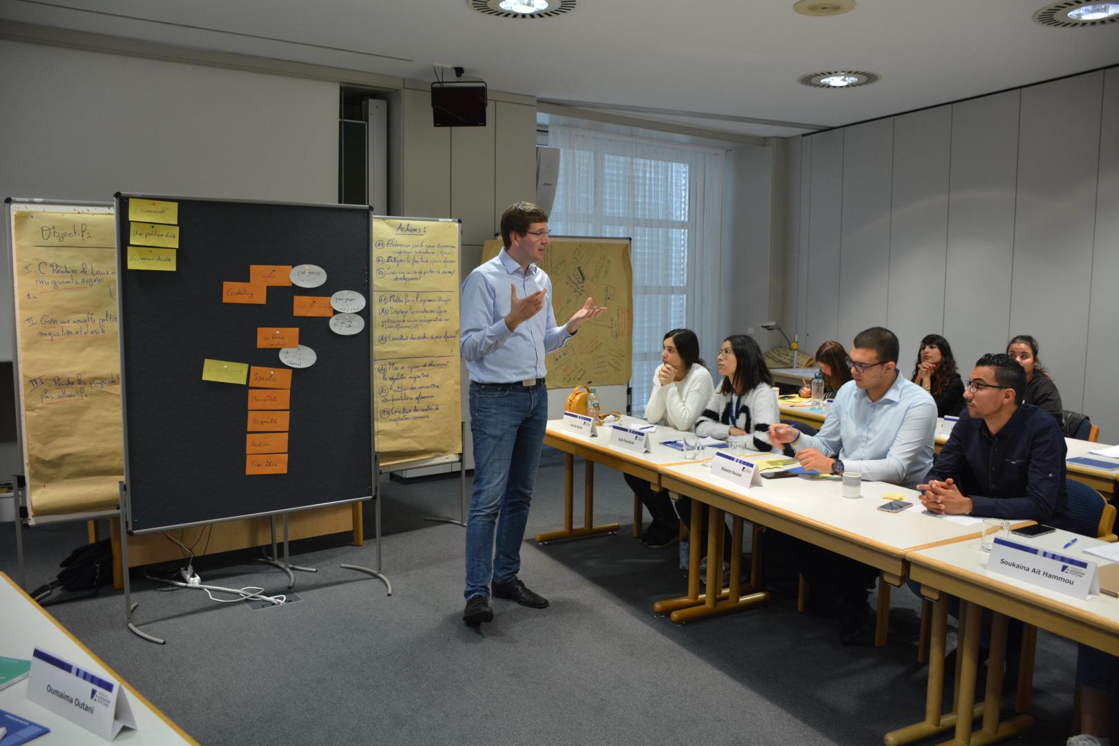 This year 29 participants from Algeria, Morocco, and Tunisia embarked on a training week on the European Union institutions and the EU-Maghreb relations. Besides a comprehensive introduction to the principles of the EU integration and the European political system, our participants touched upon key-questions for the two shores of the Mediterranean such as the importance of the EU-Maghreb cooperation on economic integration, the management of migratory flows as well as education and skills flows. Those exchanges took the form of roundtables during which our participants benefited from each other's experiences encountered on the field.