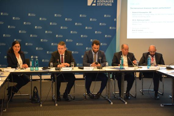 The off-the-record meeting that took place less than two weeks after the Berlin Conference on Libya allowed for a conversation on the results of the conference, how Libyan stakeholders react to what has been agreed upon in Berlin and what its chances of success are. The workshop was preceded by bilateral meetings with representatives of German political institutions. Among others, HE Dr. Mahmoud Gebril, former Prime Minister of Libya, Dr. Christian Buck, Head of the Middle East and North Africa Department at the German Foreign Office, and MP Roderich Kiesewetter, Member of the German Bundestag and Representative of Foreign Affairs of the CDU/CSU-Caucus, joined the conversation.