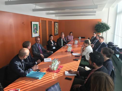 Following the Dialogue Forum with the participation of members of the German Bundestag Johann Wadephul and Peter Stein as well as member of the Assemblée nationale Gwendal Rouillard, the French delegation of representatives from politics, the media and think tanks had bilateral meetings with the Federal Chancellery, the Federal Foreign Office and the Ministry of Defence.