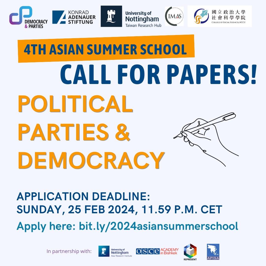 📣 Call for papers for the 4th Asian Summer School on Political Parties & Democracy are now open! 📣