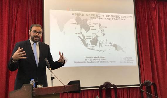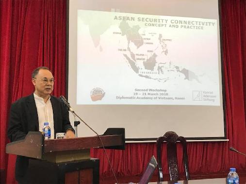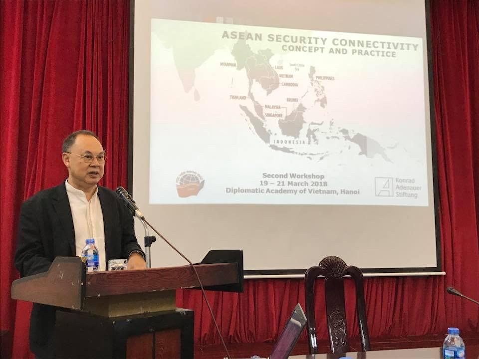 In their respective opening remarks, the President of the DAV, Assoc. Prof. Nguyen Vu Tung, KASPDA Director Christian Echle and KAS Vietnam Director Peter Girke all stressed that regional integration is key to an ever growing number of transnational security challenges. Such challenges are beyond nation states’ capacities and require regional solutions. The participants agreed and gave their input from a variety of angels. His Excellency Kasit Piromya, former Foreign Minister of the Kingdom of Thailand provided some first-hand insights on ASEAN security cooperation. During his time at the Thai Foreign Ministry, ASEAN could shine with successful ASEAN-initiated conflict resolution in Southeast Asia. H.E. Kasit shared his experience with ASEAN’s regional diplomacy during the Thai- Cambodian border conflict, where he himself represented one of the warring parties. The reason it worked successfully, he believed, was a proactive Indonesian ASEAN Chair in the person of Marty Natalegawa, Indonesia’s Foreign Minister at the time. H.E. Kasit also felt that because the ASEAN Chair took the initiative, other member states felt they could exercise social pressure on Thailand and Cambodia to end their quarrels in a diplomatic manner to the good of the region.