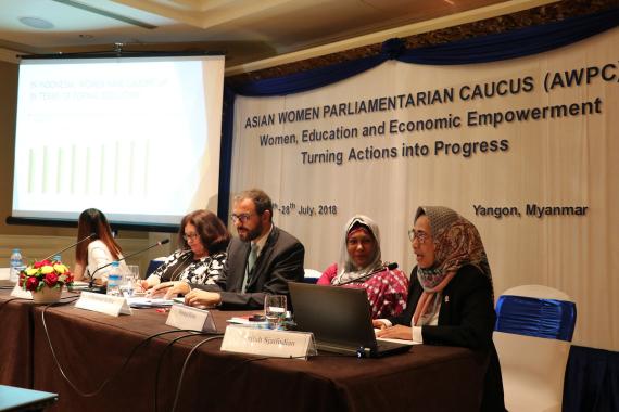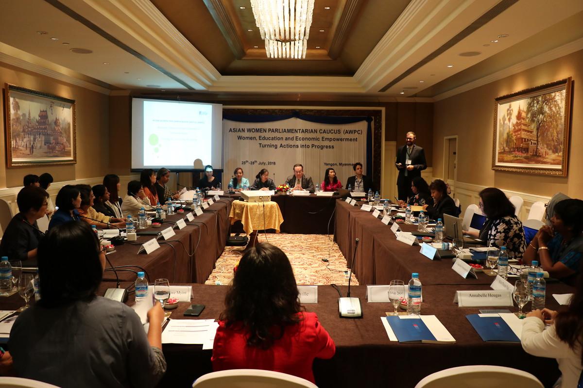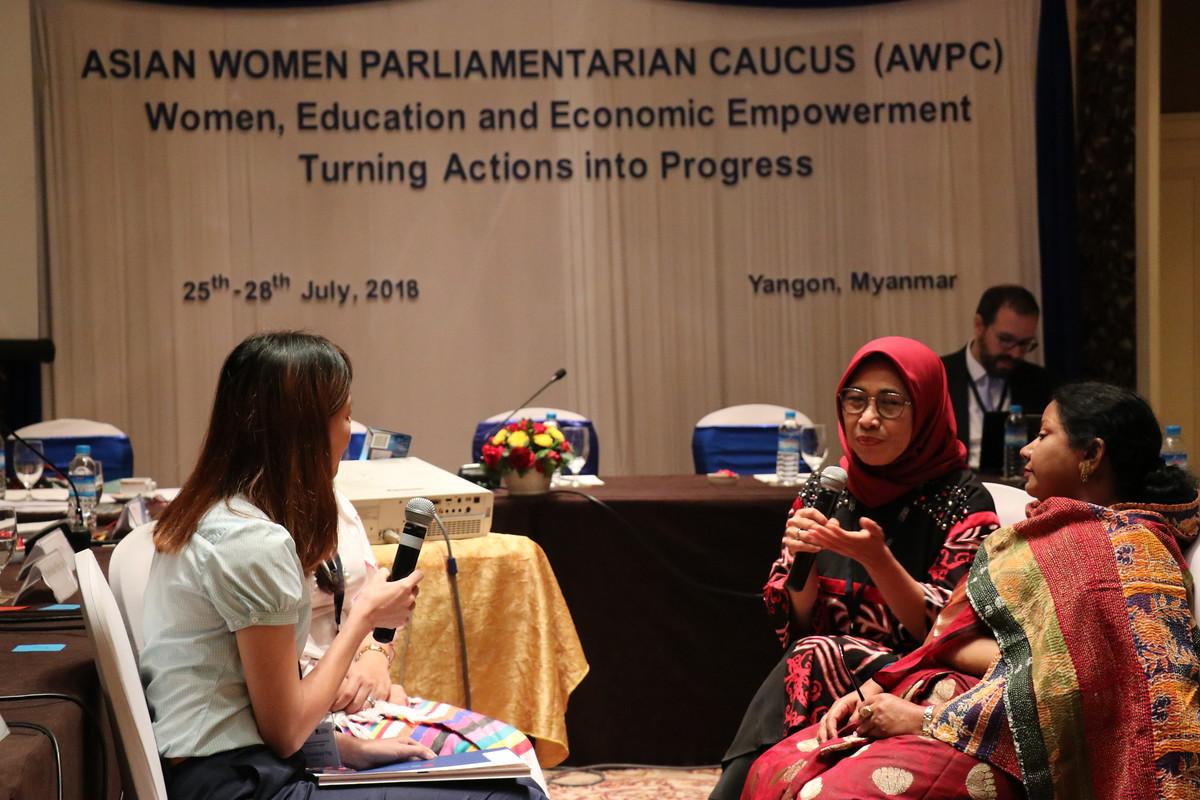 A group of 24 parliamentarians, heads of business networks, women organizations and representative took part in this year's AWPC to discuss about the economic empowerment of women in the region. Along with sharing about best practices and discussion on successful strategies, two global solutions were highlighted to be the most beneficial for the region. First, it was agreed that it is imperative to bring women into the heart of the economies and second it is important to engage men -at the household, community and policy levels while working towards the economic empowerment of women.