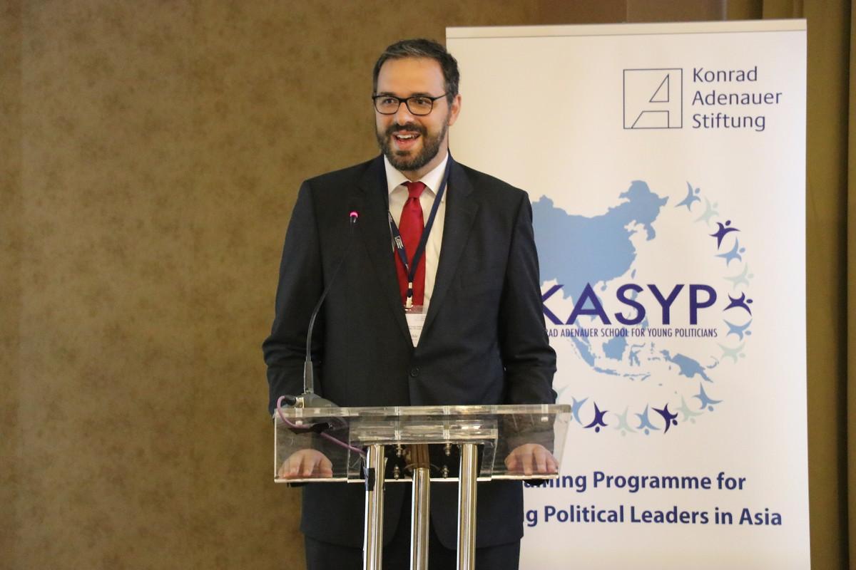 Esteemed speakers were invited to share their experiences in the region with the young delegation. One of them was Amb. Jörn Rohde, German ambassador to Sri Lanka, who encapsulated the global and regional trends in democracy building and political participation, including the growing need for consensus building in his special address. This offered a good segway for follow up discussions on the conceptual understanding of political parties in areas of ideology making and promotion, youth engagement and understanding its role against the domestic and international political climate. The Southeast Asian perspective was presented by Dr Bridget Welsh, Associate Professor of Political Science and Director of Asian Outreach at John Cabot University in Rome, while the South Asian perspective was presented by Dr Sandeep Shastri, Pro Vice Chancellor of Jain University, Bangalore, India. This was strengthened with country presentations from the participants and a live debate on the available yet contentious delimitations of youth participation in politics.