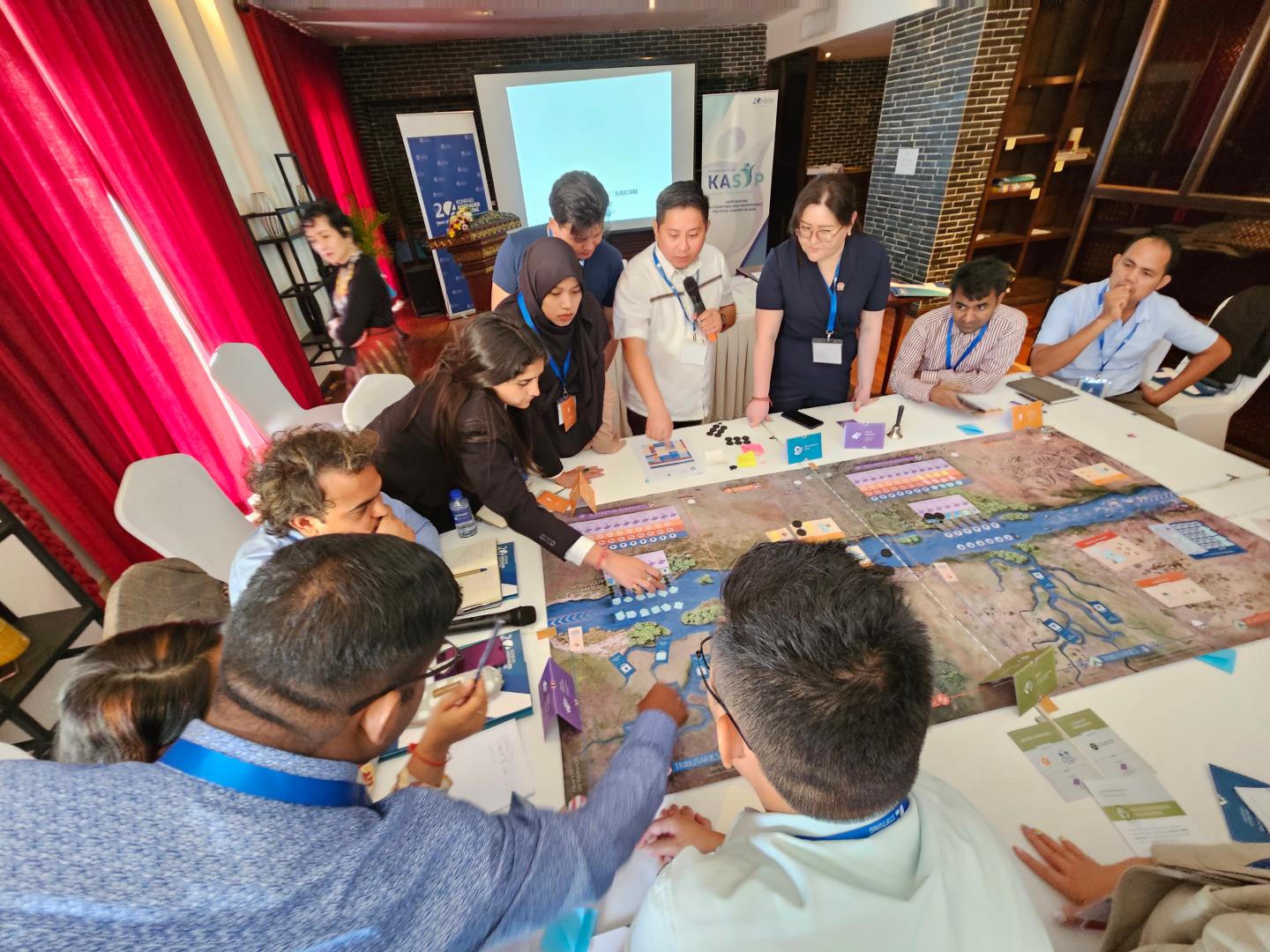 To provide the appropriate content for the core topics, Dr. Marcelino Pandin, Adviser to the United Cities and Local Governments in Asia and Pacific (ASPAC), facilitated a discussion on regional trends in local governance and development in the region. He pointed out four key issues affecting local governance and development namely employment, digitalization, insecurity, and health/disaster preparedness. This was followed by a simulation game conducted by Mr. Rey Padit. It was the first time for KASYP to employ simulation game as a learning tool. Mr. Padit adopted the Nexus Game for Sustainability which is a simulation game on solving water related problems within the intersection of food, development and energy.