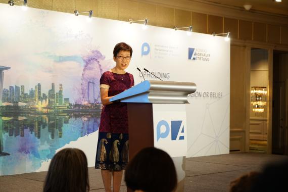 Prof. Dr. Norbert Lammert, Chairman of KAS and former President of the German Bundestag, had travelled to Singapore and so had about 70 parliamentarians from 40 countries around the world, among them the members of the Bundestag Mr. Markus Grübel MdB (also Commissioner of the Federal Government for Worldwide Religious Freedom), Prof. Dr. Heribert Hirte MdB and Mr. Volker Kauder MdB.
