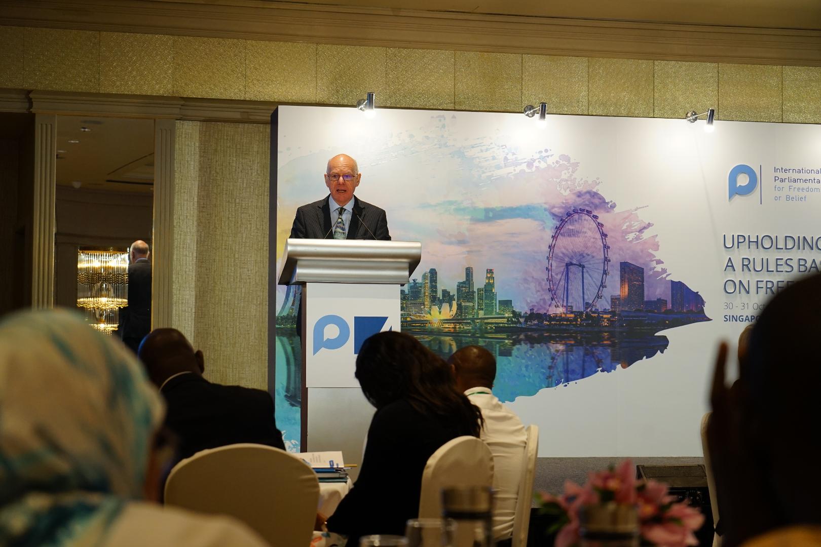 David Anderson had presented the "Singapore Declaration on Freedom of Religion or Belief" to the participants in his opening statement. 60 MPs signed a two-page declaration emphasizing the importance of ‘strengthening and promoting freedom of religion or belief as a universal and non-derogable human right’. In the face of growing threats to freedom of religion or belief, the Declaration calls for priorities to be set in advocating for this human right, including the abolition of blasphemy laws, ensure prohibition of racial or religious hatred, as well as promote respect for non-discrimination and non-coercion. The signed declaration will also be sent to UN Secretary-General António Guterres. Parliamentarians support this declaration in their personal capacity and not as representatives of their government, political party or any other body.