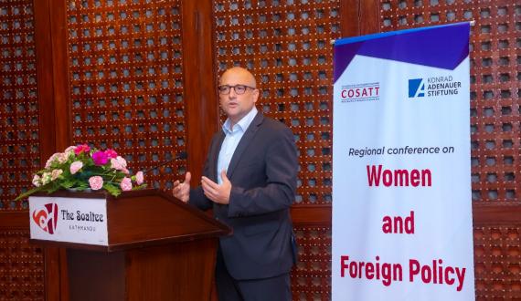 The conference commenced with Dr. Nischal N. Pandey, Convener of Consortium of South Asian Think Tanks (COSATT), welcoming the delegates and stressing the importance of incorporating a gender perspective into foreign policy discussions. Mr Andreas Klein, Director of the Konrad Adenauer Foundation's Political Dialogue Asia in Singapore, supported this approach, noting that female politicians worldwide face similar challenges and must show courage, regardless of nationality, to prove themselves in a male-dominated world.