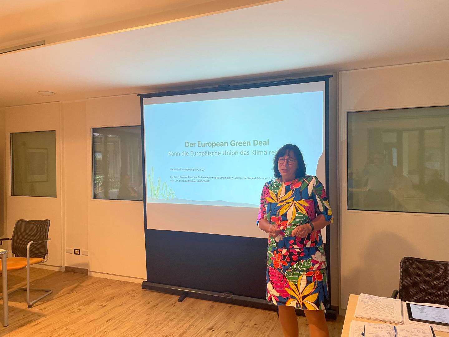 Was ist der europäische Green Deal überhaupt? Wie vertragen sich verstärkter Klimaschutz bei gleichzeitiger Erhaltung der Wettbewerbsfähigkeit? Welche Auswirkungen auf die Gesellschaft sind zu erwarten? Und wie kann es schlussendlich gelingen, unsere Wirtschaft innovativ und nachhaltig zu transformieren, ohne Wohlstandsverluste in Kauf nehmen zu müssen? Alles Fragen und Themen, die im mehrtägigen Seminar „Der Green Deal als Blaupause für Innovation und Nachhaltigkeit? Perspektiven für Wirtschaft und Gesellschaft“ in der Villa La Collina, Konrad Adenauers ehemaliger Ferienresidenz, behandelt wurden.