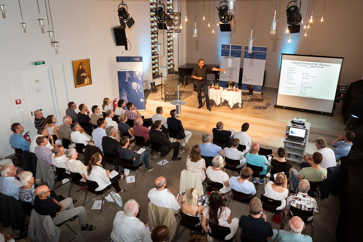 Dr. Ludger Gruber, Landesbeauftragter der Konrad-Adenauer-Stiftung für Nordrhein-Westfalen, begrüßte das Publikum: „Spitzensport kann nur von dem leben, das von der Breite kommt“. Danach richtete Schirmherr Gröhe das Wort an die Gäste. Sportler seien Vorbilder, auch über den sportlichen Rahmen hinaus. „Deutschland ist eine stolze Sportnation, wir sind auch breit aufgestellt.“ Die Diskussion über Reformationen im Leistungssport müsse in der Öffentlichkeit geführt werden. Thomas Nuyen, der Sportkoordinator des Gymnasiums, stellt das Förderkonzept der Schule vor.