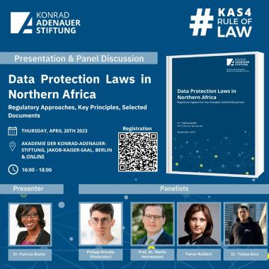 North Africa has seen an unprecedented increase in data protection regulations since the introduction of the General Data Protection Regulation (GDPR) in the EU in 2016. In cooperation with the Rule of Law Programme for the Middle East and North Africa of the KAS, Prof. Dr. Moritz Hennemann and Dr. Patricia Boshe of the University of Passau have prepared a detailed comparative overview of the current status and development of data protection regulations in seven North African countries. The study "Data Protection Laws in Northern Africa" was presented in Tunis in October 2022, and was now also presented it at the Headquarters of the Konrad-Adenauer-Stiftung in Berlin in April 2023.