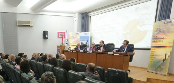 At 4:00 PM, the symposium commenced with an opening session in which Professor Pascal Monin, the Director of the Observatory on Public Service and Good Governance, stated that “We are full of hope that Lebanon will emerge from its crisis and restore normal political life”. He added: “The law that regulates the establishment of parties is the Ottoman Associations Law issued in 1909. This alone reveals the depth of the problem and the necessity of developing the required legislation”.