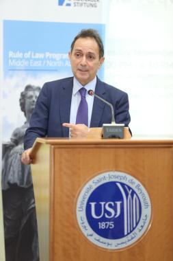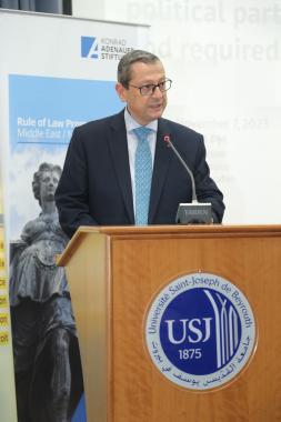 Mr. Philipp Bremer, the head of the Rule of Law Program Middle East and North Africa in the Konrad-Adenauer-Stiftung represented by Mr. Paul Saadeh Project Manager at the Rule of Law Programme, followed by mentioning that “Political parties constitute one of the pillars of democratic systems, or even their most important pillar. Which therefore is a need for a society to organize its differences and disagreements. It is also a human need that pushes a person to come out of his shell and selfishness to turn towards others, towards the society”.