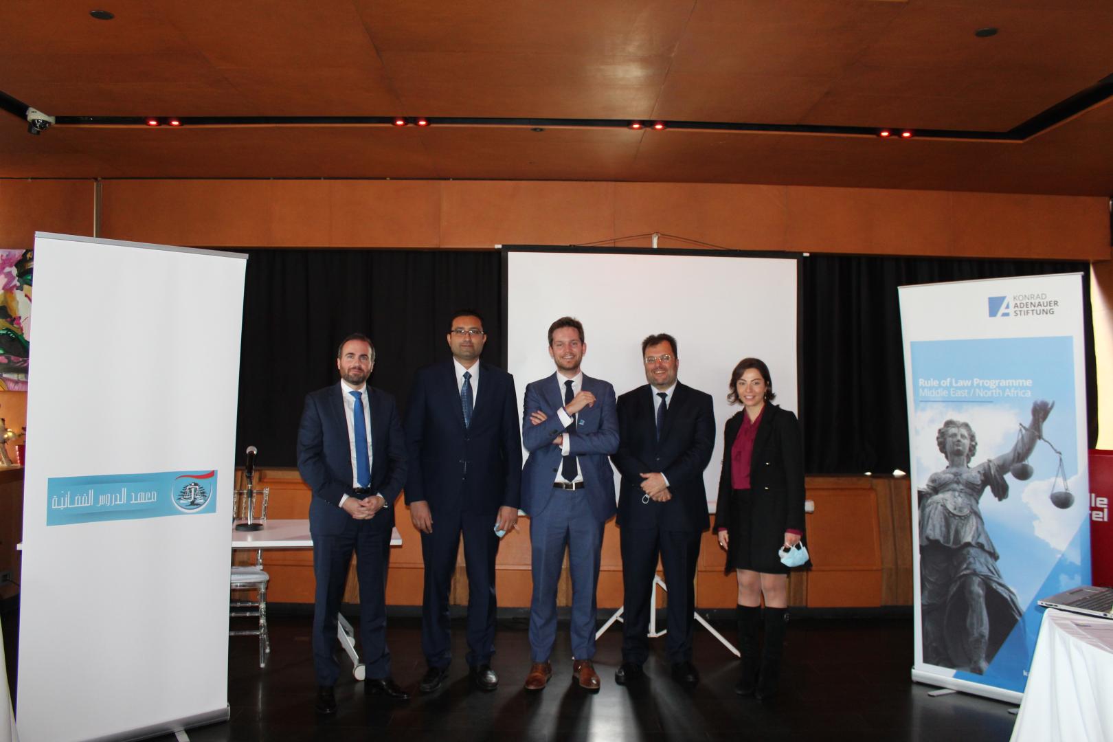 Following that, Mr. Philipp Bremer, Director of the Konrad-Adenauer-Stiftung (KAS) Rule of Law Programme Middle East & North Africa, spoke about the vital and important role that judges play in the structure of a modern democracy, an independent judiciary, and in defending the rule of law without interference or pressure. Mr. Bremer further emphasized that, in these severe circumstances, we must all remain positive, driven, and alert; and ensure that all efforts to uphold the rule of law in this country are not in vain and that those rights be safeguarded for the benefit of the Lebanese people.