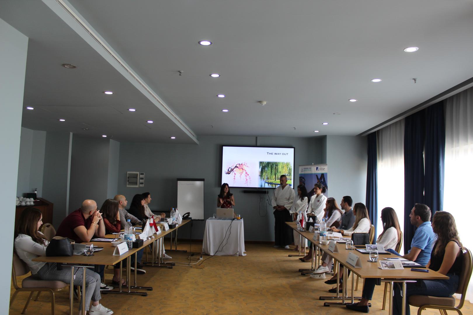 - “Verbal Martial Art”, a session given by Mrs. Raya Boustani, a senior communication trainer and coach & a certified mediator. This training focused on conflict management and how de-escalation in a situation can be achieved through body language, tone of voice and choice of words. Emphasis was placed on how the other party's words can be cleverly employed to yield a positive effect. Three martial arts instructors practically demonstrated these concepts, allowing the participants to experience this firsthand during martial arts exercises which fostered camaraderie among the participants and provided an excellent opportunity to apply the knowledge gained through role-playing activities.