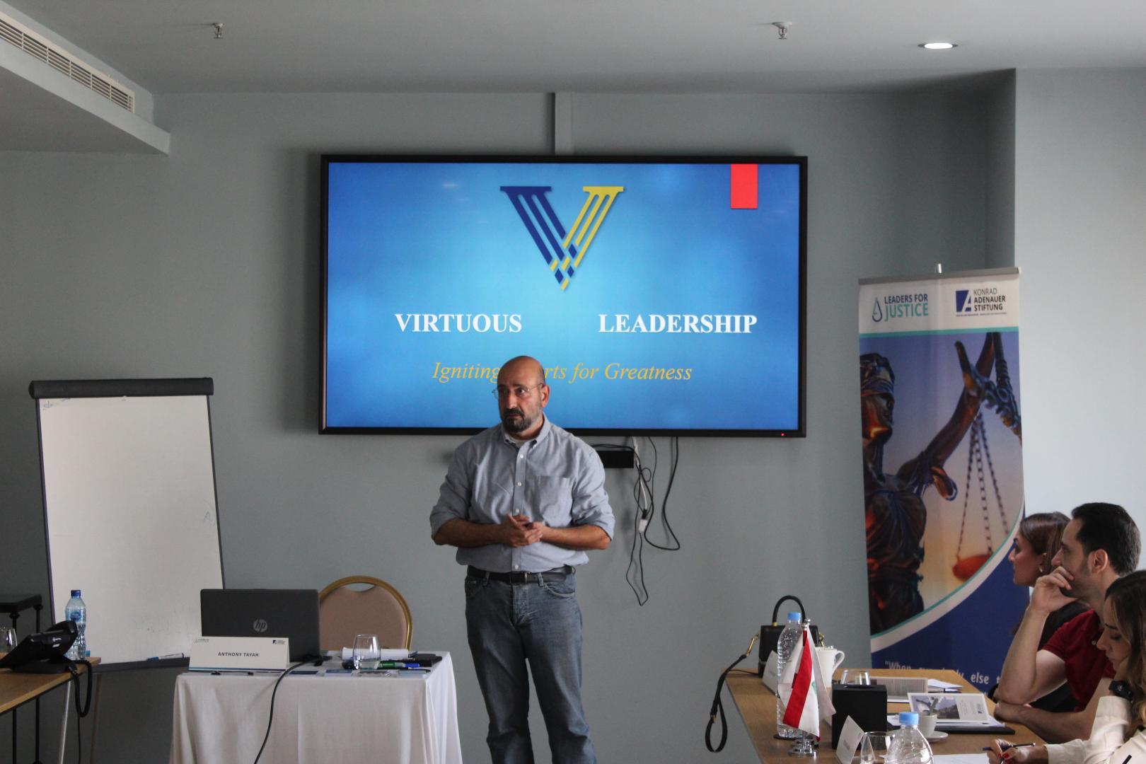 - “Virtous Leadership”, which was accompanied by Mr. Anthony Tayah, a consultant, teacher and a trainer at Havard Virtuous Leadership Institute (HVLI). This session highlighted the importance of one’s personal knowledge, that can lead to self-improvement and self-realization. Each participant had the chance to discover his/her own temperament, the latter being the foundation on which we build our character, that is made up of virtues. The main moto of this session was ‘Igniting Hearts for Greatness’.