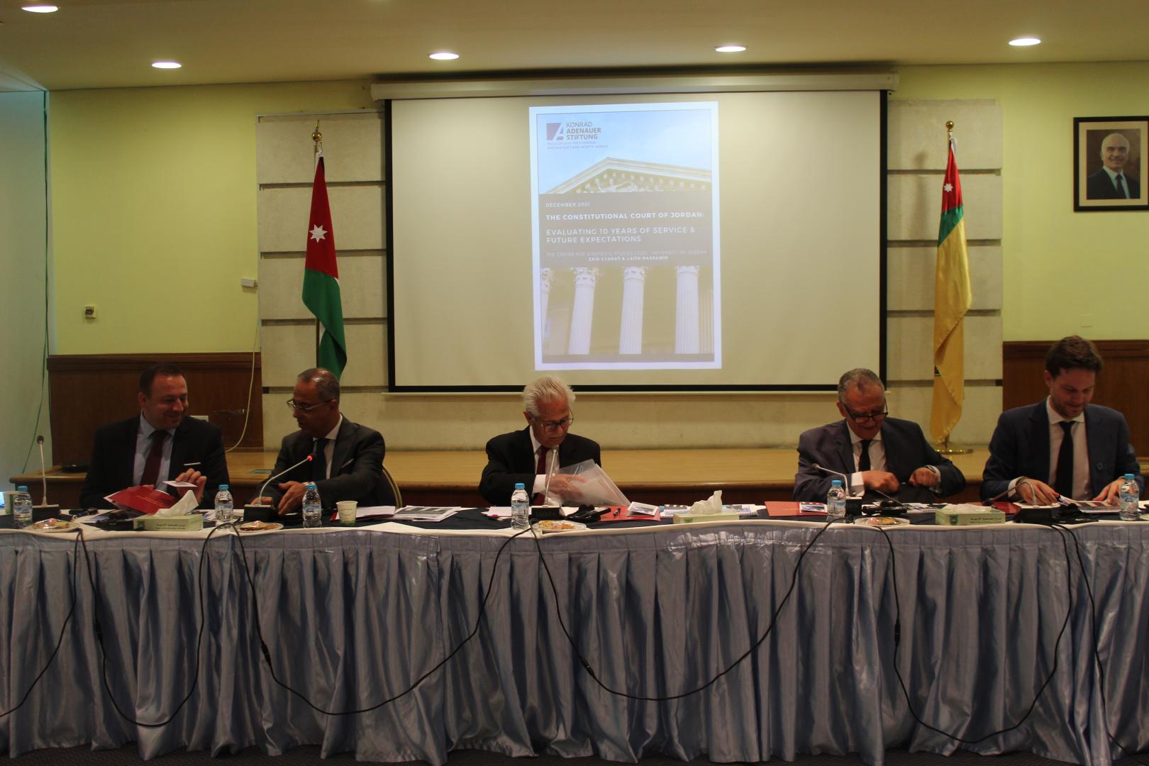 The panel started with welcome speeches held by Prof. Zaid Eyadat, Director of the Center for Strategic Studies, University of Jordan and Mr. Philipp Bremer, Director of the Konrad-Adenauer-Stiftung Rule of Law Programme Middle East and North Africa,and was followed by the viewing of the discussion paper by Prof. Ziad Eyadat and Prof. Laith Nasraween.