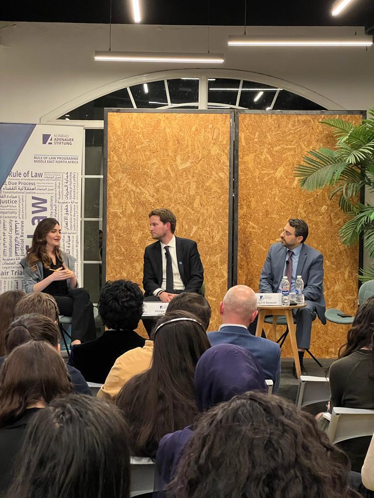 The event started with opening remarks in which Mr. Philipp Bremer, the director of the Rule of Law Programme and the event moderator, introduced the present panelists: Me. Rina Constantine, LL.M., an international lawyer and international law and affairs advisor to the Lebanese Ministry of Justice; and Me. Edgard Abawatt, LL.M. - a constitutional expert and lecturer at Université La Sagesse.