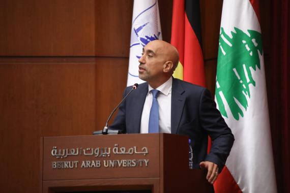His speech was followed by Mr. Philipp Bremer, Director of the Konrad Adenauer Stiftung Rule of Law Programme Middle East and North Africa, who introduced the students to the Konrad-Adenauer-Stiftung and its programs in Lebanon and the region, mentioning that the foundation's concept is based on a deep respect for human dignity, fundamental rights, and the principles of social market economy. Regarding the seminars topic, he added: “In the entire region the rule of law as we know it - as it is laid out in international agreements and treaties, withholding not only the separation of powers but also the protection of human rights – is facing a dire time. In several countries we are experiencing heated constitutional discussions and possible malpractices, a judiciary – and Lebanon I believe is a good example of this – that is fighting for its constitutionally granted independence, challenged by political interference and an economic crisis, making day to day work extremely difficult.