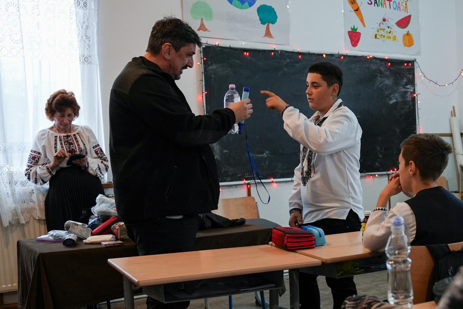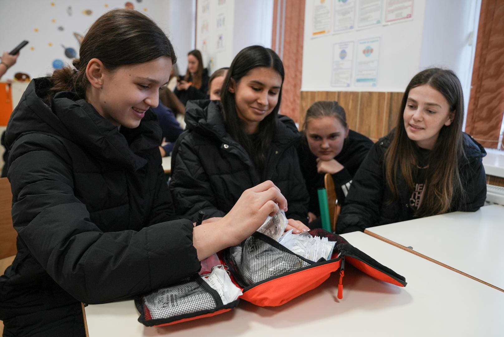 The workshops teach students how to prepare their own emergency backpack - a kit with essential items for the first 72 hours after a disaster: documents, water, non-perishable food, flashlight, radio, medical kit, medicines, clothing, external battery, etc.