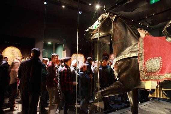 „Das Fremde in uns. Diskussion zum Islam in unserer Gesellschaft“ war die erste Veranstaltung des Projekts "Zeitgeschichten". Dieses hat zum Ziel, kulturelle Brüche, Neuanfänge und Veränderungen von Weltanschauungen in der Entwicklung Dresdens an kulturell wichtigen Orten sichtbar zu machen und die Herausforderungen für das Selbstverständnis seiner Bürger zu diskutieren. Der erste Teil der aktuellen Veranstaltung bestand aus einer Sonderführung durch die Türckische Cammer im Dresdner Residenzschloss. Es handelte sich hierbei nicht um eine Führung im eigentlichen Sinne. So konnten die Gäste selbstständig die Ausstellung besichtigen und sich von anwesenden Mitarbeitern der Staatlichen Kunstsammlungen Dresden Informationen geben lassen und Fragen stellen.