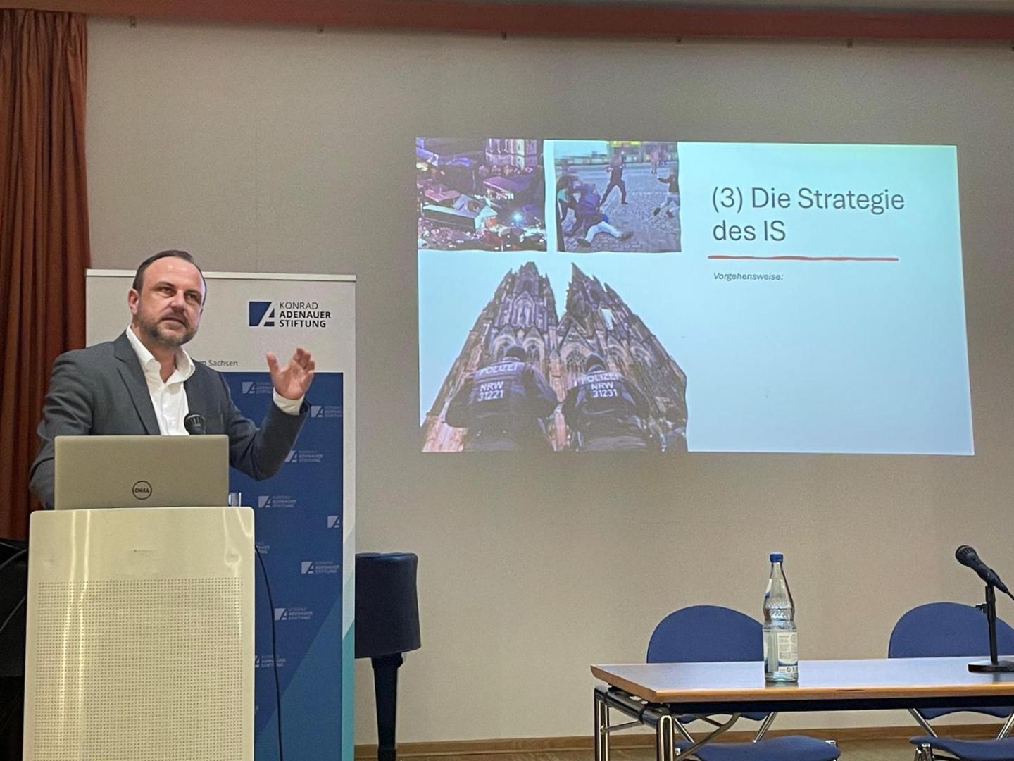 Ronny Heine, der Landesbeauftragte der Konrad-Adenauer-Stiftung für Sachsen, eröffnete den Abend mit einer kurzen Einführung in die Thematik. Heine betonte, wie wichtig es sei, dem Dschihadismus unvoreingenommen zu begegnen und die wachsende Bedrohung ernsthaft zu betrachten.