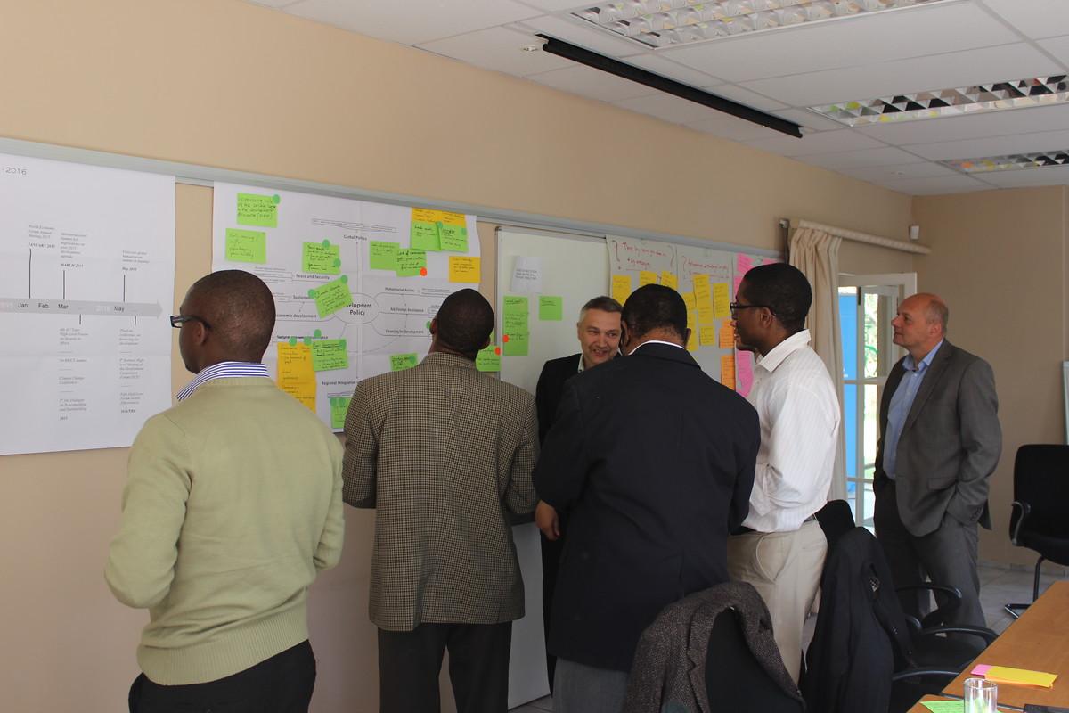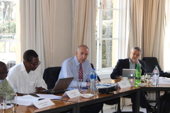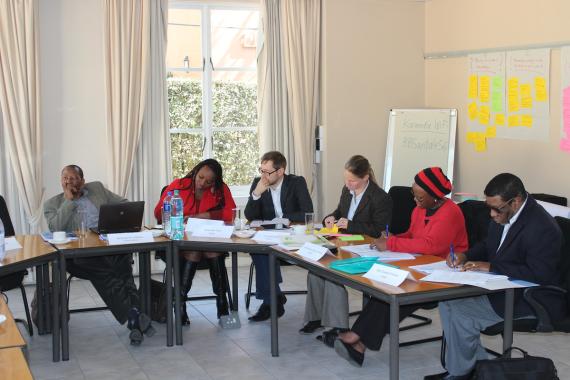 Boichoko A. Ditlhake (SADC-CNGO), Kijala Shako (Southern Africa Trust), Alexander Gaus (GPPi), Julia Steets (GPPi), Phindile Lukhele-Olorunju (AISA in HSRC) and Oladele Arowolo (HSRC).
