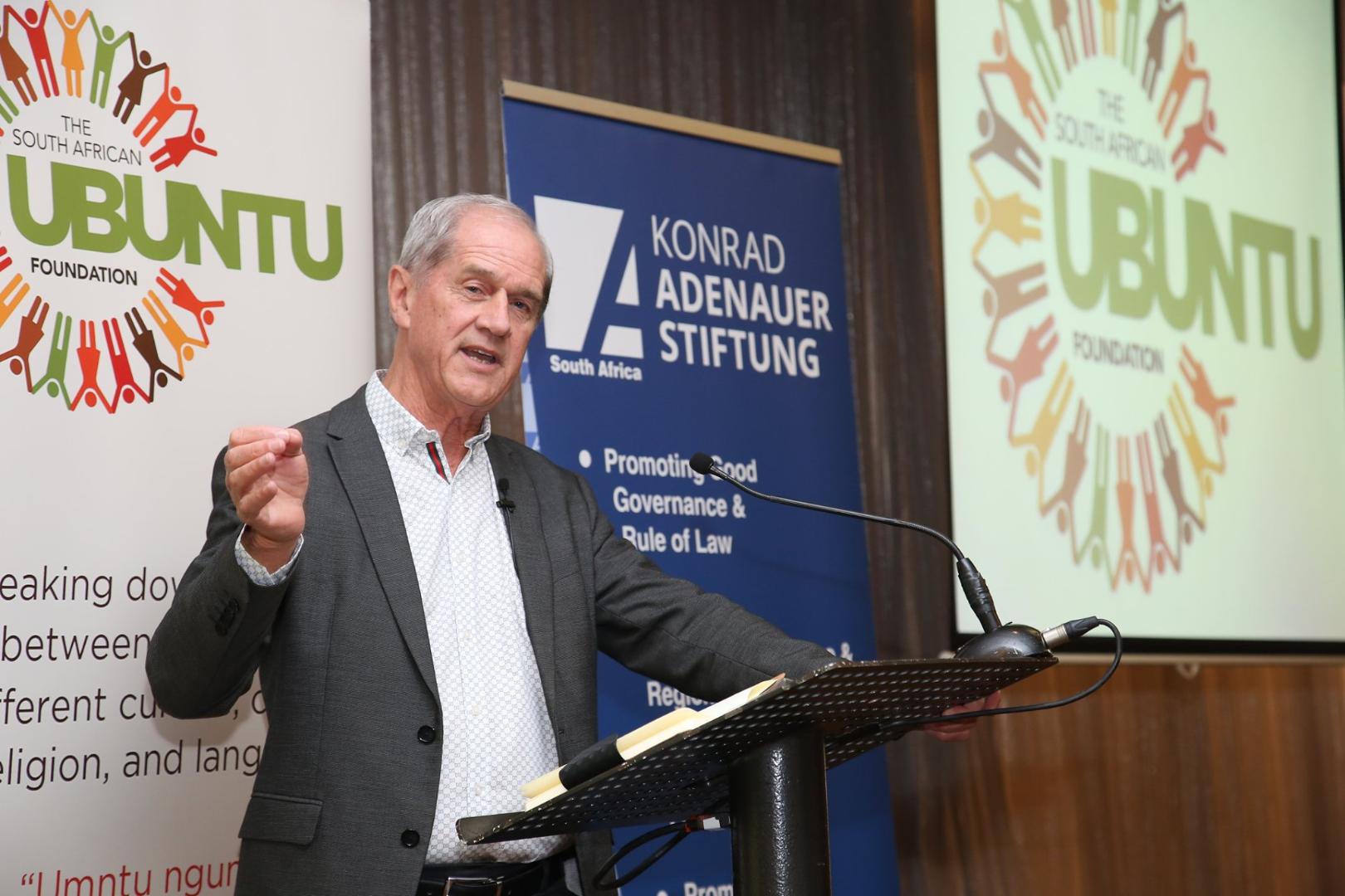 Christina Teichmann, KAS Project Manager and Coordinator of the new KAS initiative “Strong Cities 2030”, introduced the event with a warm welcome. After introducing the mission of the Konrad Adenauer Foundation, Teichmann elaborated the benefits of the social market economy, which brought prosperity and social stability to Germany. Furthermore, Teichmann reminded the audience how Roelf Meyer’s diplomatic skills paved the way for his cooperation with President Ramaphosa during South Africa’s transition to democracy. According to Teichmann, South Africa is currently confronted with a major economic crisis and the fact that the ANC party is split complicates the situation.