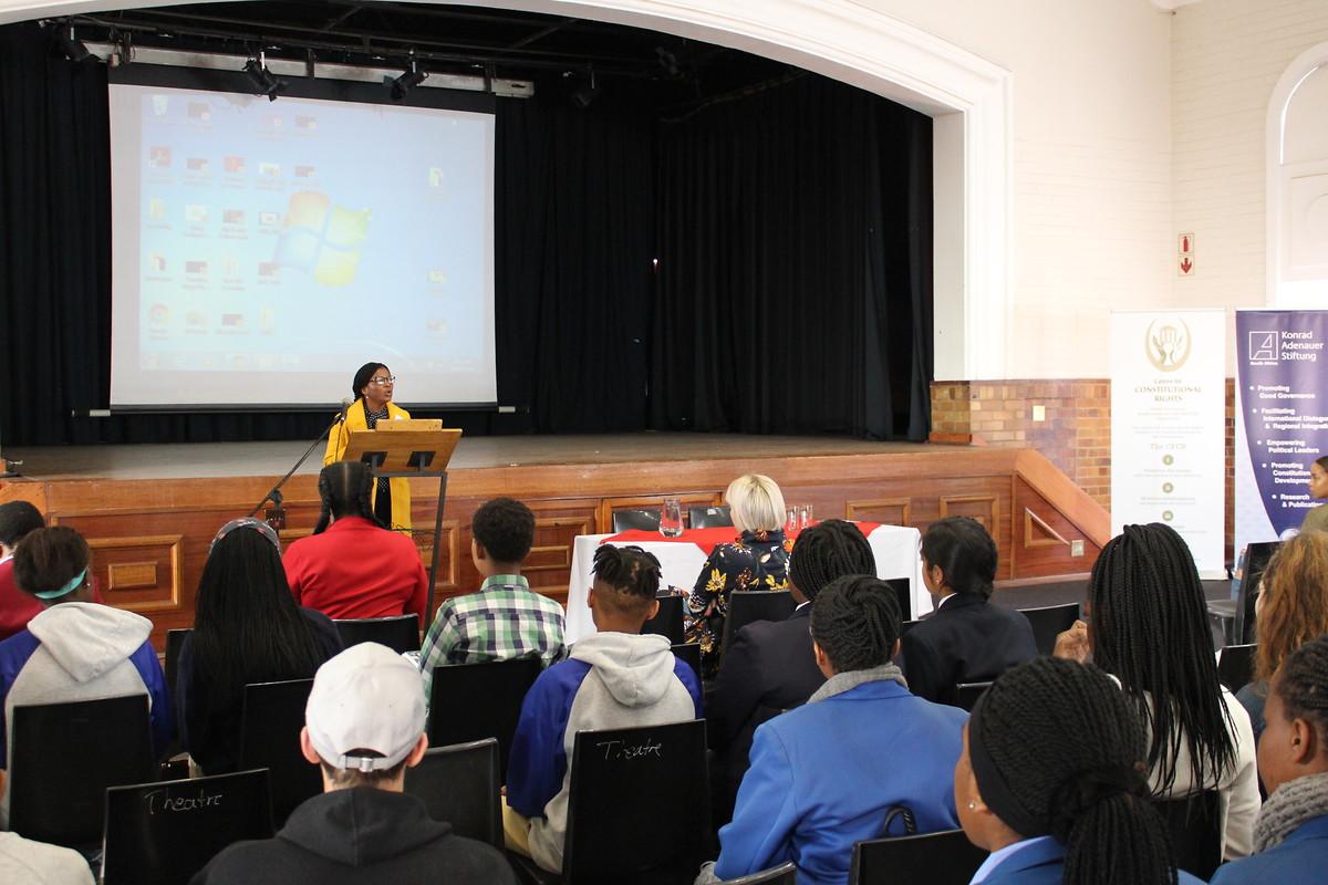 In order to actively engage the students, Ms. Rebecca Sibanda (Legal Assistant, Centre for Constitutional Rights) introduced an icebreaker. The students were asked various questions regarding the Constitution as well as the political system in South Africa. The learners enjoyed the exercise and answered the questions attentively.