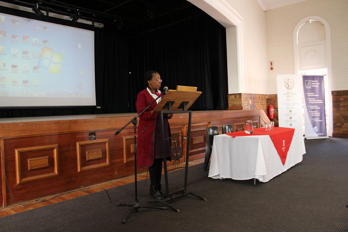 The event started with welcoming remarks given by Ms. Phephelaphi Dube (Director, Centre for Constitutional Rights), Ms. Nancy Msibi (Project Manager, Konrad Adenauer Foundation) and Ms. Tinhiko Nkuna (Deputy Headmistress, St. Mary’s School). Ms. Phephelaphi Dube began her welcoming speech by introducing the young learners to the work of the Centre for Constitutional Rights while she highlighted the importance of the Constitution, particularly, the right to express yourself. She pointed out that it is essential to discuss the limits of freedom of expression, especially with regard to Social Media and the digital age we live in.