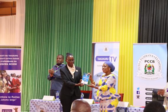 During the course of 2020 there were a number of joint ToTs to educate PCCB officers. The attending officers were enabled to provide the education to ward officials and local government authorities in nine Regions. After a successful year 2020 PCCB and KAS continued their activities in 2021, educating further PCCB staff as well as local government authorities. Organizing trainings in more regions throughout the country more than 54 PCCB official staffs were able to profit from the training. This year’s highlight was a large training activity in the capital city Dodoma. For the concluding day several high ranking guests and keynote speakers were present. Most notably Minister of President Office Regional Administration and Local Government Authority gave a key speech while a National Scouts Leader Hon. Mwantumu Mahiza, Deputy Director of PCCB Neema Mwakalyelye, Dr. Emmanuel Kiyabo Director of Community Education at PCCB and last but not least Dr. Tilman Feltes Director of the KAS Tanzania Office in Dar es Salaam. The Minister congratulated the PCCB and KAS for their efforts and expressed her support of the measures. Following the speeches, the Deputy Director of PCCB and the Minister presented the training manual to the media.