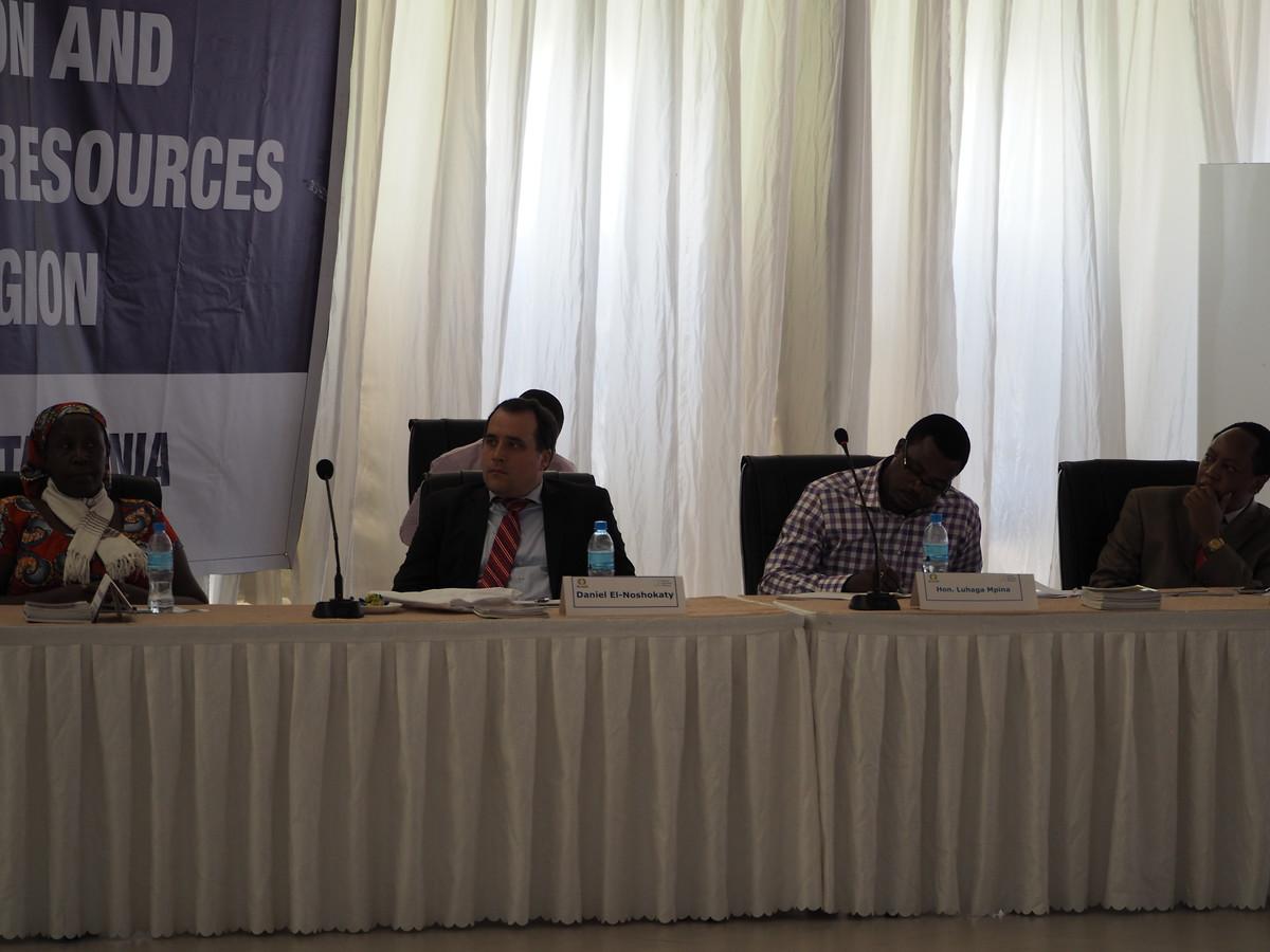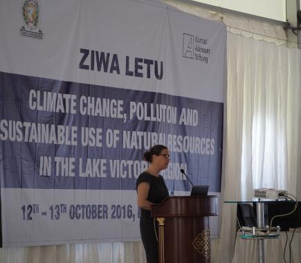 Additionally: the four invited regional experts Sowed Sewagudde (Ministry of Water and Environment, Republic of Uganda), Pius Mabuba (Environmental Advocacy Expert, United Republic of Tanzania), Baraza Wangwe (National Environment Management Authority (NEMA), Republic of Kenya), Anna Masasi (Environmental Specialist in the Lake Victoria Environmental Management Project of Worldbank, LVEMP) and the KAS Tanzania program coordinator Richard Shaba (f.l.t.r.).