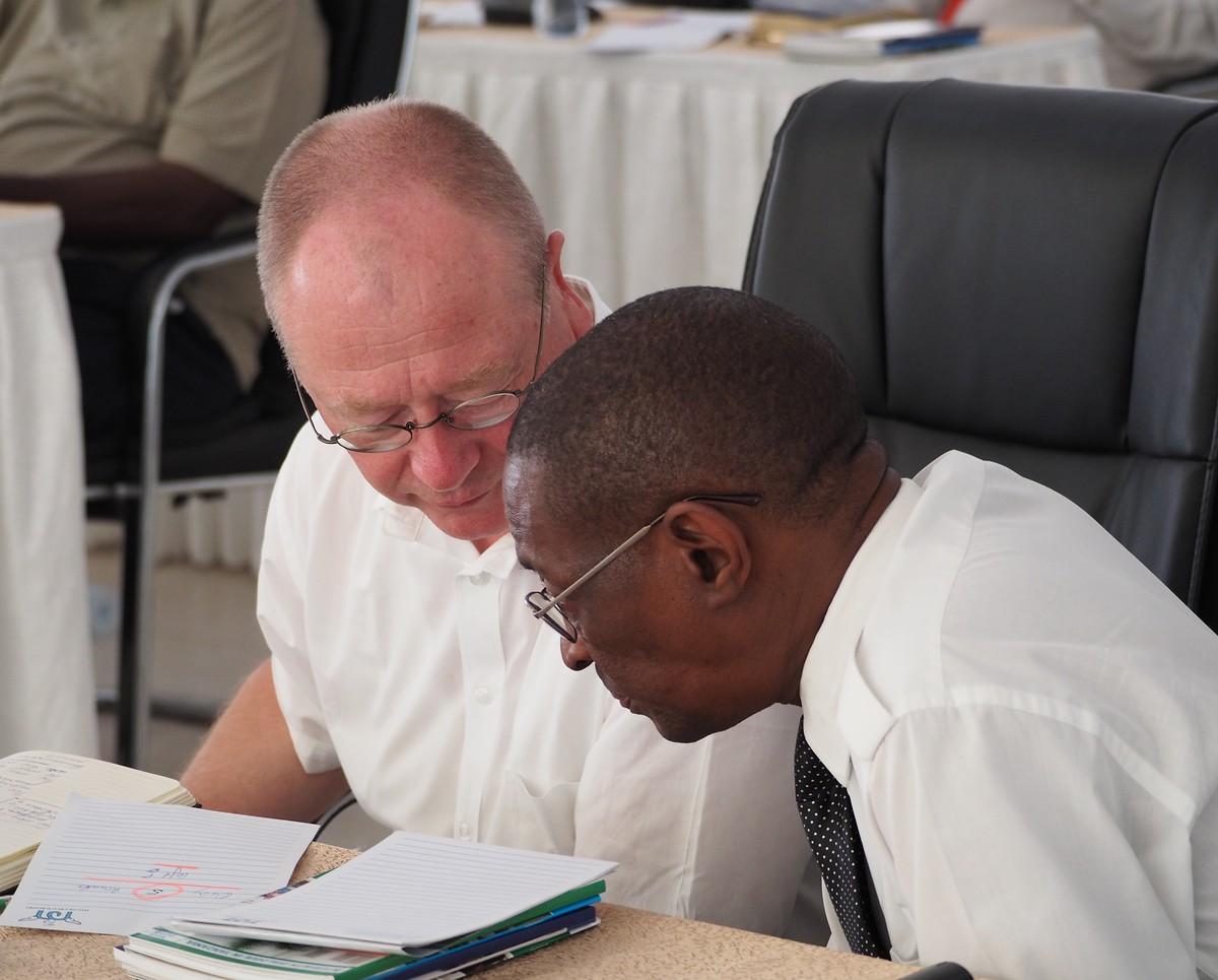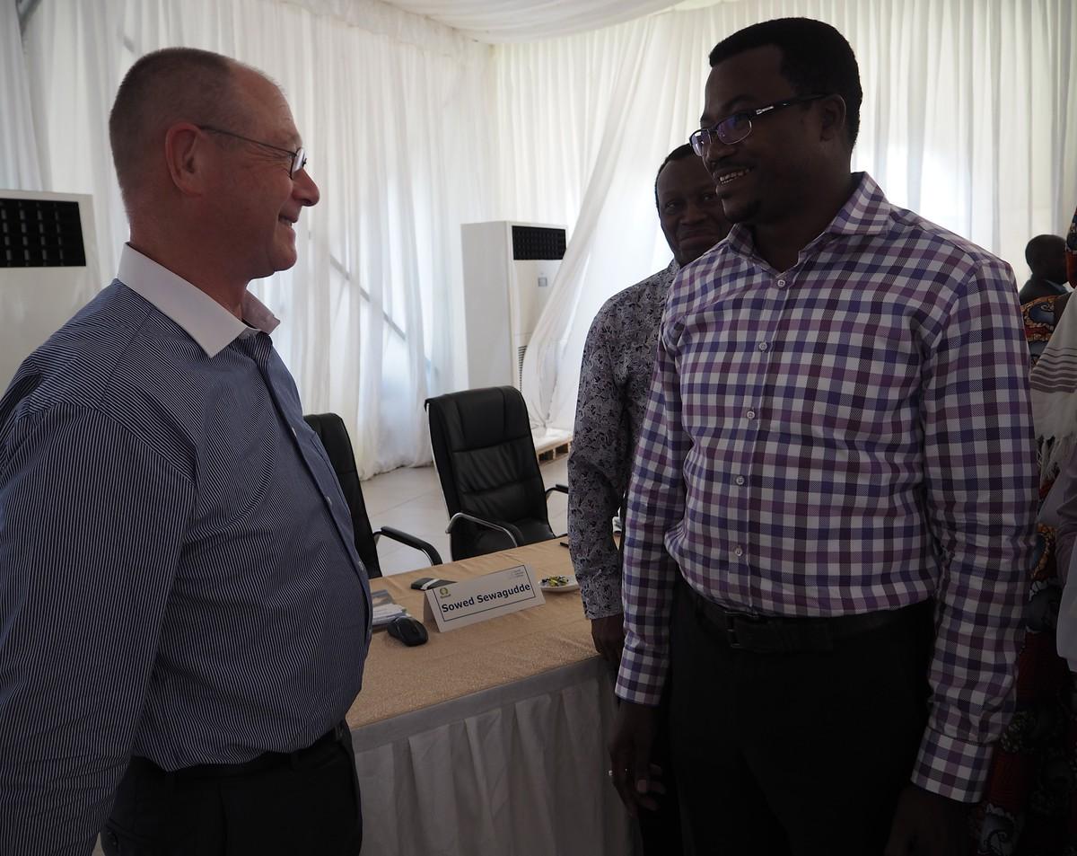 Afterwards, a panel discussion is chaired by Dr. Arne Wulff, Director of the Rule of Law Program for Sub-Saharan Africa of KAS. Dr. Wulff here exchanging views with Richard Shaba from KAS Tanzania.