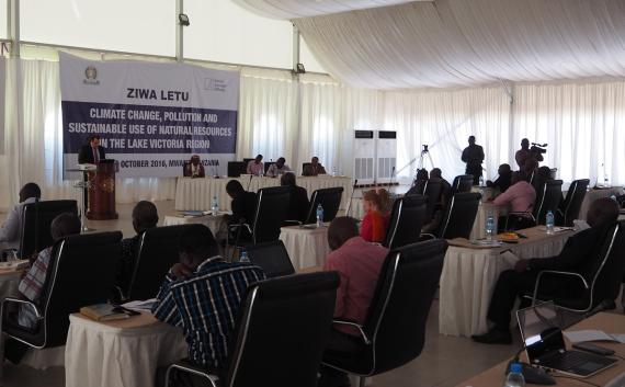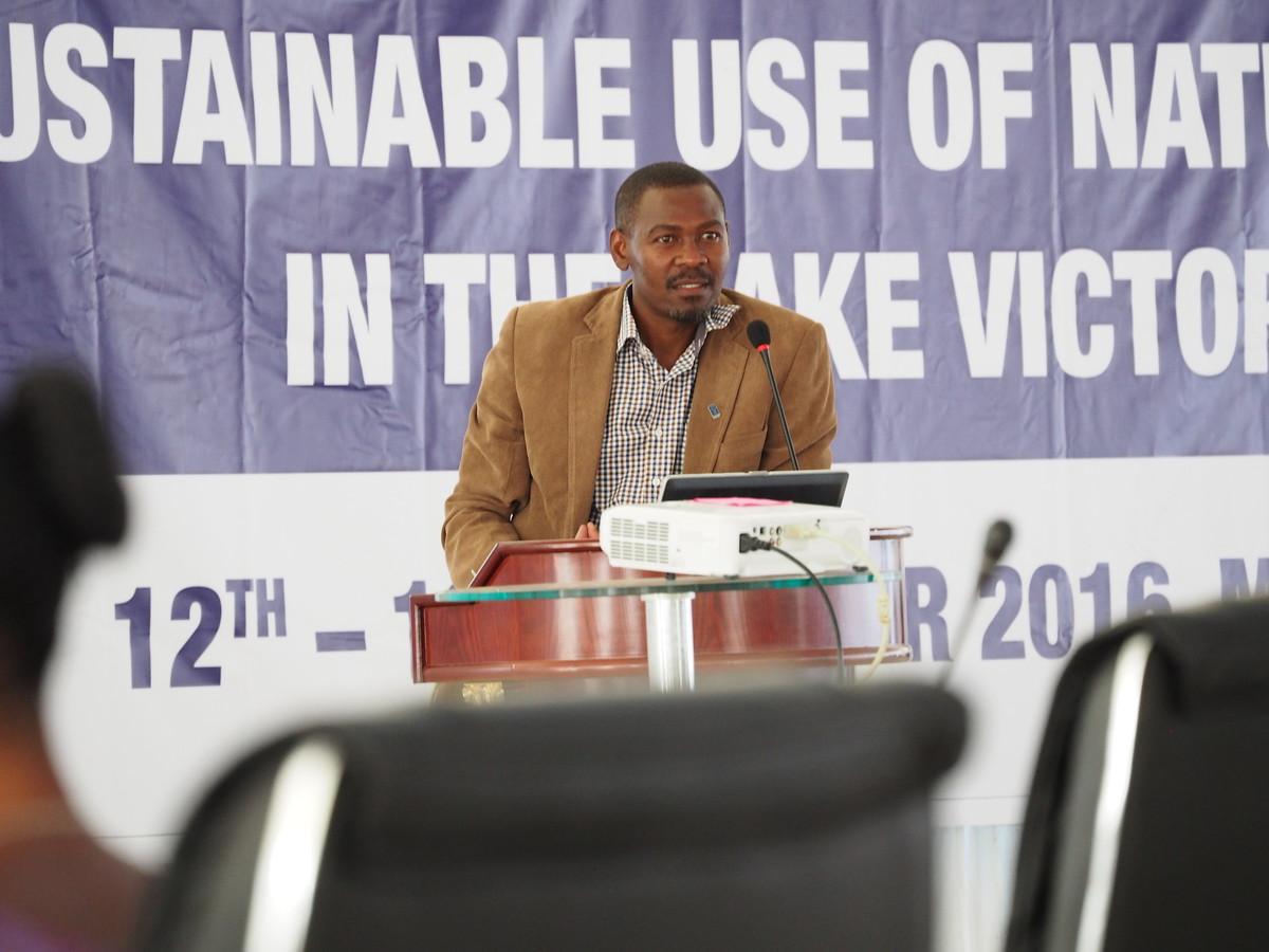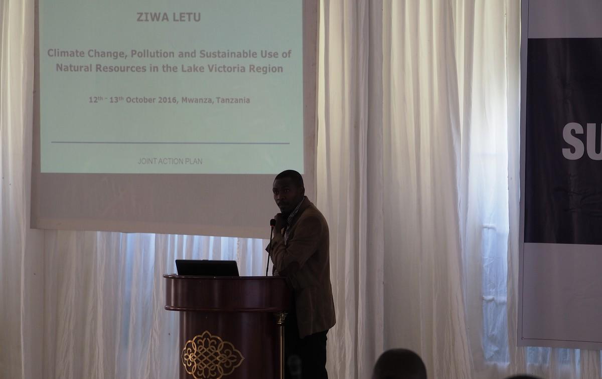 During the panel discussion Pius Mabuba, Environmental Advocacy Expert from Tanzania, presents experiences and opportunities to tackle challenges at Lake Victoria from a Tanzanian perspective.