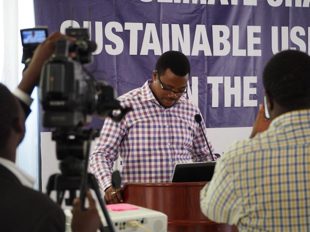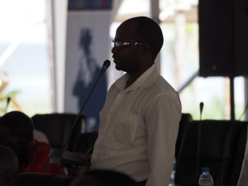 A representative of numerous Civil Society Organisations (CSOs) informs the audience about his initiatives that address challenges in the Lake Victoria region mentioned before by Anna Masasi.