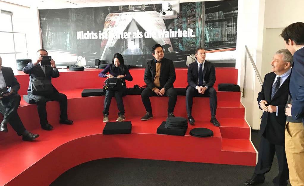 Am ersten Tag des Programms besuchte die Gruppe das Axel-Springer-Verlagshaus. Dort erhielten sie sowohl die Möglichkeit aus nächster Nähe das tägliche Geschäft zweier großer Zeitungen (Die Welt, Bild) zu erleben als auch im Rahmen von Diskussionsrunden die Bedeutung der Medien in einer Demokratie zu erörtern.