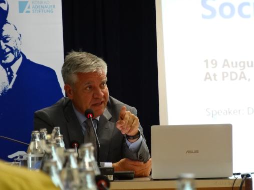 On 19 August 2019, Konrad Adenauer Foundation Thailand Office held an expert talk on the principles of Social Market Economy from Germany’s experiences. The talk was honourably delivered by Dr Frank Steffel, a member of German Parliament from CDU/CSU Party, to representatives from KAS Thailand’s partner and co-partner organisations who have been working on the projects to develop the concept of the social market economy into real practice.
