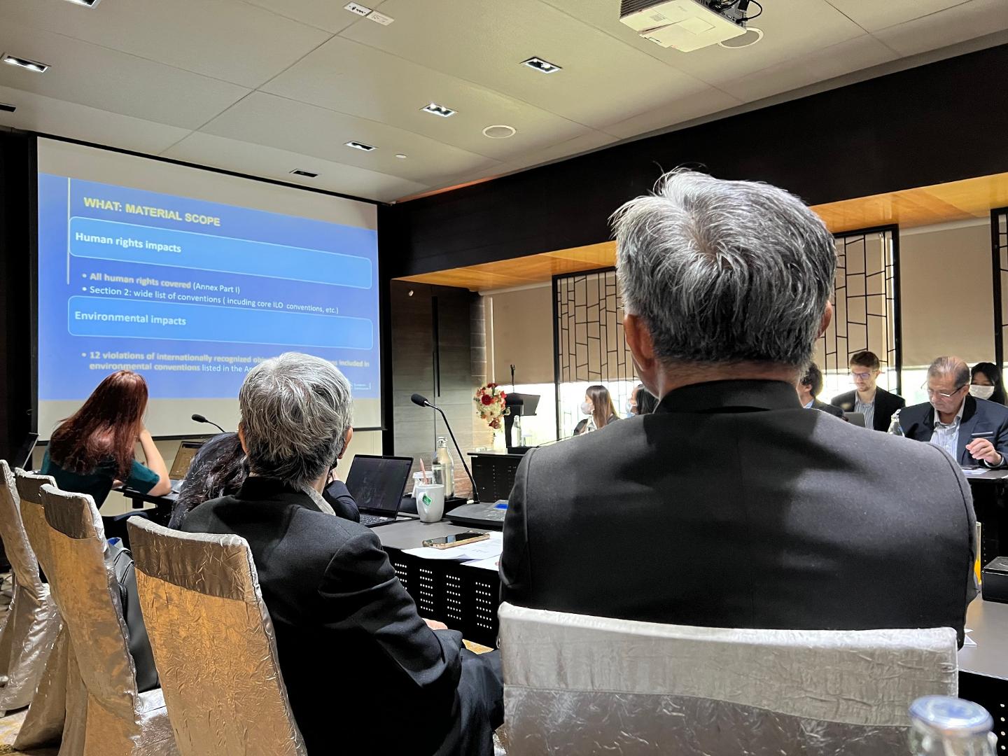Pointing to the European Green Deal, one of the speakers highlighted the significance of sustainability as a key driver in EU-policymaking and provided numerous examples of previously issued regulations. Emphasizing again that the CSDDD is based on already existing international voluntary frameworks, the speaker added that the directive is now looking to formalize those by providing sanctions mechanisms to actively enforce the said framework. The presentations further outlined the main high impact sectors as well as the different categories of affected companies in the EU. The seminar then proceeded to expound the scope of the legislation as well as the resulting obligations for affected companies and their directors. Additionally, before going into more detail regarding the benefits for citizens, companies, and partner countries, it was outlined how the directive shall be implemented and enforced. Finally, it was clarified that the directive has not yet left the proposal stage. Therefore, the next steps in the conception of the draft directive will constitute its official adoption and the subsequent transposition into national law by all 27 EU member states. This will likely take 2-3 years, thus giving Thai companies an approximate timeline to adjust their business practices.