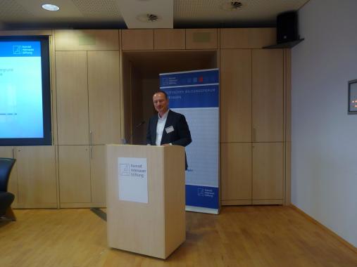 Tobias Bott als Pressesprecher pflichtete den Vorrednern bei und ergänzte, dass er als Pressesprecher der KAS in der Bundeshauptstadt Berlin vielleicht noch stärker als andere Kollegen in Thüringen im Wettbewerb mit anderen Nachrichtengebern stehe, um überhaupt mit Pressemitteilungen wahrgenommen zu werden bei der Vielzahl der Institutionen, Politiker und Ereignisse. Dies führe natürlich dazu, dass es eine genuine politische Sprache gebe, da die Adressaten andere Journalisten seien bzw. die Konrad-Adenauer-Stiftung auch von diesen als genuin politische Institution wahrgenommen werden möchte.