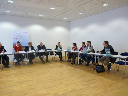 In der Abschlussdiskussion wurden schließlich die in den jeweiligen Panels erarbeiten Thesen zusammengetragen. In Panel I kamen die Teilnehmer zu dem Schluss, dass in Thüringen der Zugang zur Politik leichter sei und entsprechend die politische Sprache auch anders ist, als etwa auf Bundesebene. Aufgrund des eher kollegialen Verhältnisses gäbe es dann in den Medien auch weniger Konkurrenz in der Berichterstattung.