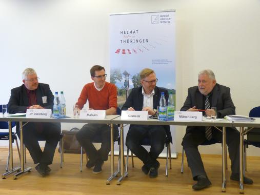 Nach einer Begrüßung durch die Landesbeauftragte des Freistaates Thüringen, Maja Eib, übernahm der Moderator des Gespräches und Medientrainer Jochen Markett das Wort. Er stellte kurz das Programm und die Referenten des ersten Podiums vor.