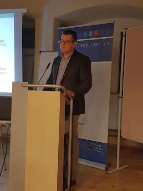 Dr. André Härtel diskutierte die Frage der innenpolitischen Reformen, der Beharrungskräfte im Innern, des Einflusses der Oligarchen und gerade des Präsidenten Poroschenko in diesem Zusammenhang anhand der These, ob die Ukraine ein demokratisches Reformlaboratorium für die Staaten sei, die mit postsowjetischen Erbe sich aus dem Zugriff Russlands lösen wollen. Härtel verwies darauf, dass es durchaus bereits Erfolge gibt, die jedoch nur langsam voran gehen, da alte Macht- und Einflussstrukturen und schwache Staatlichkeit dies verhinderten. Überdies käme erst seit 2014 die Herausbildung einer ukrainischen Identität jenseits ethnischer und religiöser Unterschiede auf, die zudem teilweise in extremen Nationalismus umschlage. Unter diesem Gesichtspunkten mahnte Härtel zur Geduld und Anreizen, wie etwa der Visafreiheit durch die EU, um als Gegenleistung Reformen zu erhalten. Allerdings seien die alten Eliten durchaus wandlungsfähig, so dass Liberalisierung und Staatlichkeit häufig wieder umgangen würden. Dennoch sei es wichtig, die Ukraine zu unterstützen als auch zu ermahnen, denn die politisch-ökonomische Lage sei sehr angespannt und für die Ukrainer müsse eine Perspektive geschaffen werden.