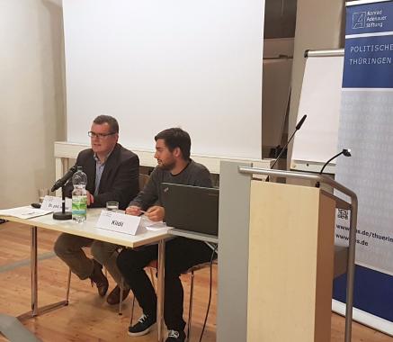 Volodydmyr Kildii, ukrainischer Masterstudent der Politikwissenschaft an der FSU-Jena, sekundierte Dr. Härtel und brachte konkrete Beispiele aus seiner Heimat und stand gemeinsam mit Dr. André Härtel in der anschließenden Fragerunde, die sehr facettenreich und teilweise kontrovers war, zur Verfügung. Nach intensiven 2 Stunden endete die Veranstaltung.