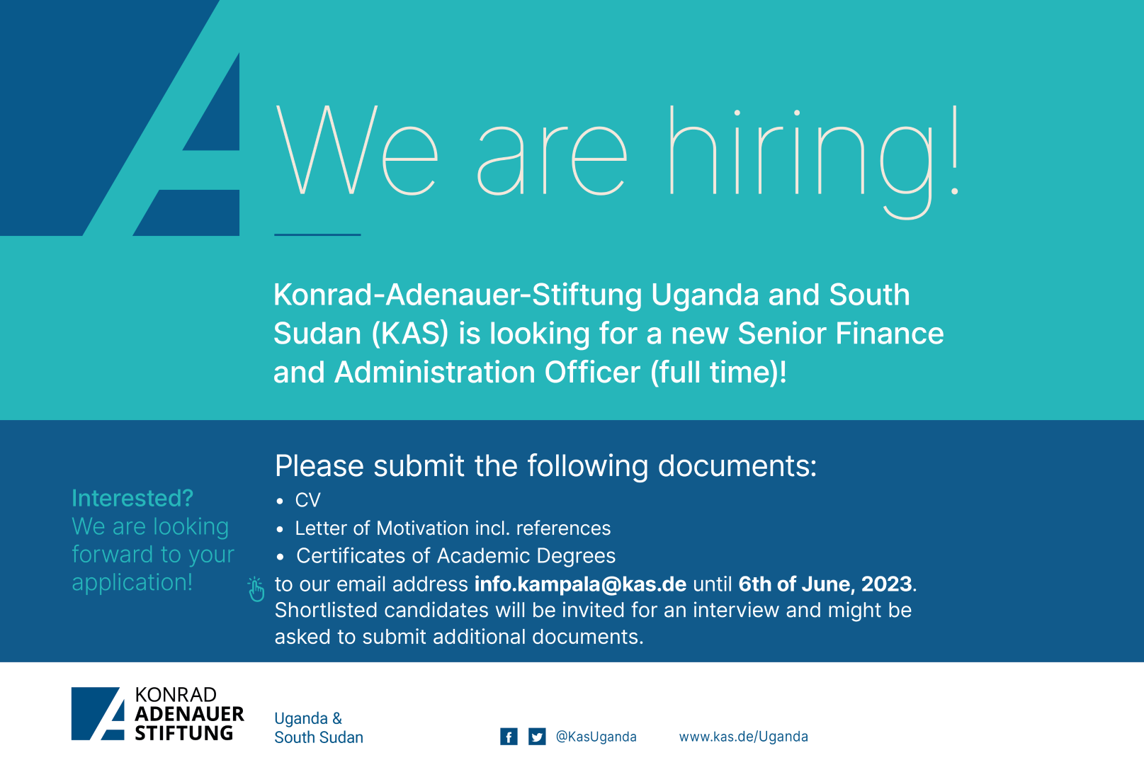 ...to the homepage of the office of the Konrad-Adenauer-Stiftung (KAS) in Uganda. Since its foundation in 1964, the engagement in political education in order to realise peace, freedom and justice as core principles to consolidate democracy has been the foundation’s focal area. This has been the basis of KAS’ work in Uganda for more than three decades.