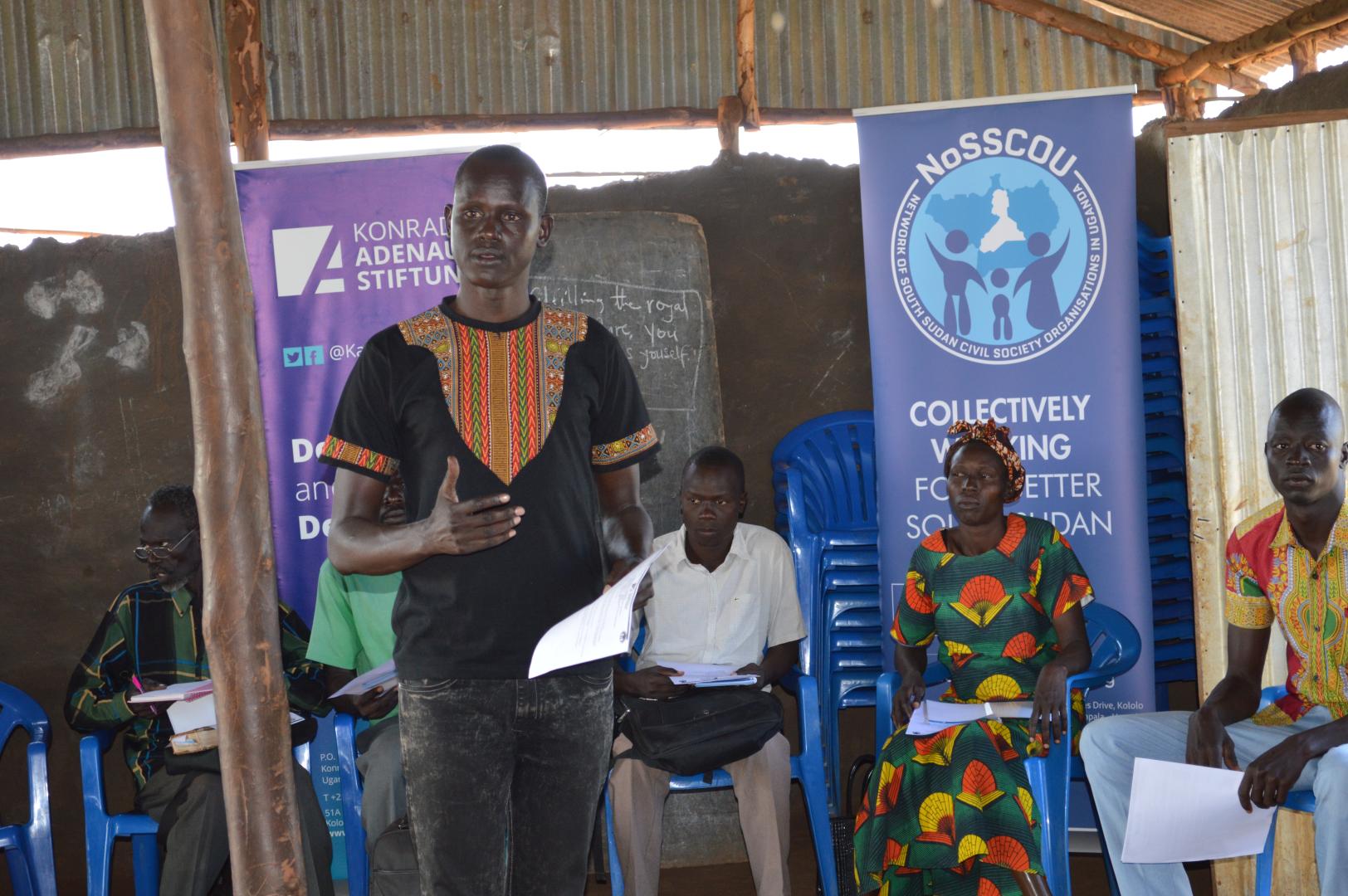 On Friday May 3rd 2019, the Network of South Sudanese Civil Society Organizations in Uganda (NoSSCOU) in partnership with Young-adult Empowerment Initiative (YEi) and the Konrad-Adenauer-Stiftung (KAS) organised a dissemination workshop on the Revitalised Agreement on the Resolution of the Conflict in South Sudan (R-ARCSS) along with an intercultural dialogue about the importance of “Building a Shared South Sudan Identity” at the Bidi Bidi Refugee Settlement in northwestern Uganda.