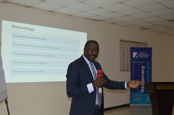 Michael Mugisha, co-director of CDA, emphasized the chances and importance of Civil Society Organizations, referring to their role in driving inclusive development and as advocacy of pro-poor policies as well as a partner in the delivery of public goods and services. The organizations were identified as an important linkage between the government or politics and the population. Hence, their weak influence and lack of cooperation were criticized. As a result, the research aims at an improvement of this situation, to enable Civil Society Organizations a stronger impact on politics. This approach was strongly supported by the participants of the workshop, even if perspectives on how this should happen differed.