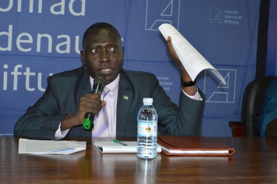 David Deng, the South Sudanese Human Rights lawyer who gave the keynote address hinged his speech three key pillars: having faith in the negotiation process, agreeing on feasible and sustainable solutions and each one taking responsibility for peace in South Sudan. Reiterating on why the sustainable solutions are important, Deng insisted that “decisions made now can either add more 20 years of war or help us find a better solution to put an end to the ongoing civil confrontation in south Sudan”. To the pessimists who do not believe in the IGAD talks, Deng listed three reasons why the talks are crucial: Firstly, the HLRF has brought together the warring factions and secondly, it has opened space for dialogue. For the talks to work, Deng suggested that more efforts are needed to sensitize the ordinary South Sudanese citizens so they can understand what’s going and by doing so, more powers will be devolved to the local people. This, Deng, emphasized can mostly be achieved if the political elites in South Sudan should create political incentives through consultations and attending to their most pressing needs. Deng also applauded IGAD for employing a very good principle of inclusivity and civic participation which acknowledges that individuals and the CSOs have unique roles to play in the peace process.