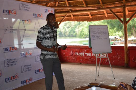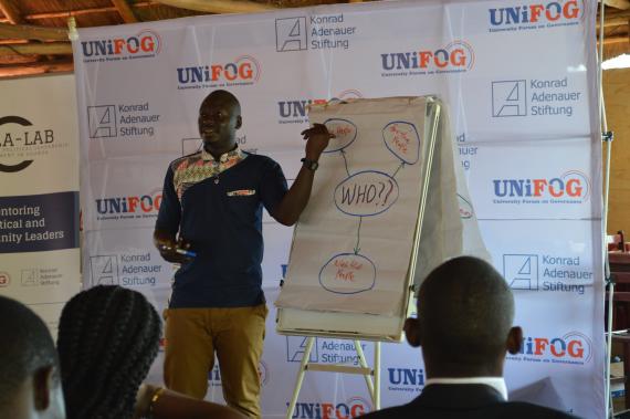 Ayub Kiranda, the programme manager at University Forum on Governance (UNIFOG) introduced the participants to the political economy analysis which enables the young leaders to understand the relationship between politics and economics and which actors, interests, resources and incentives must be taken into account in a decision-making process. This analysis is the key pillar for understanding how to engage with various stakeholders and how to mobilize them.