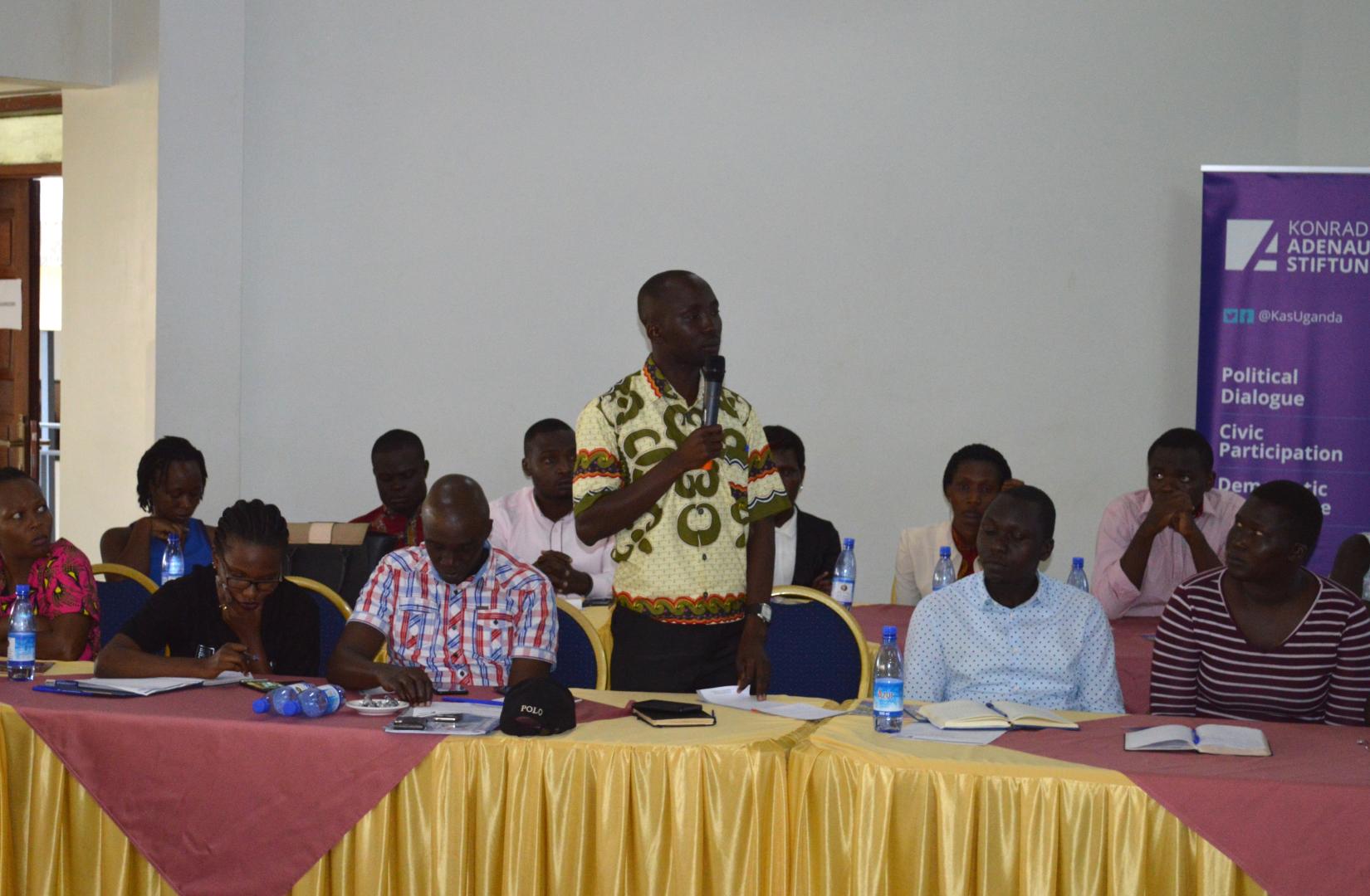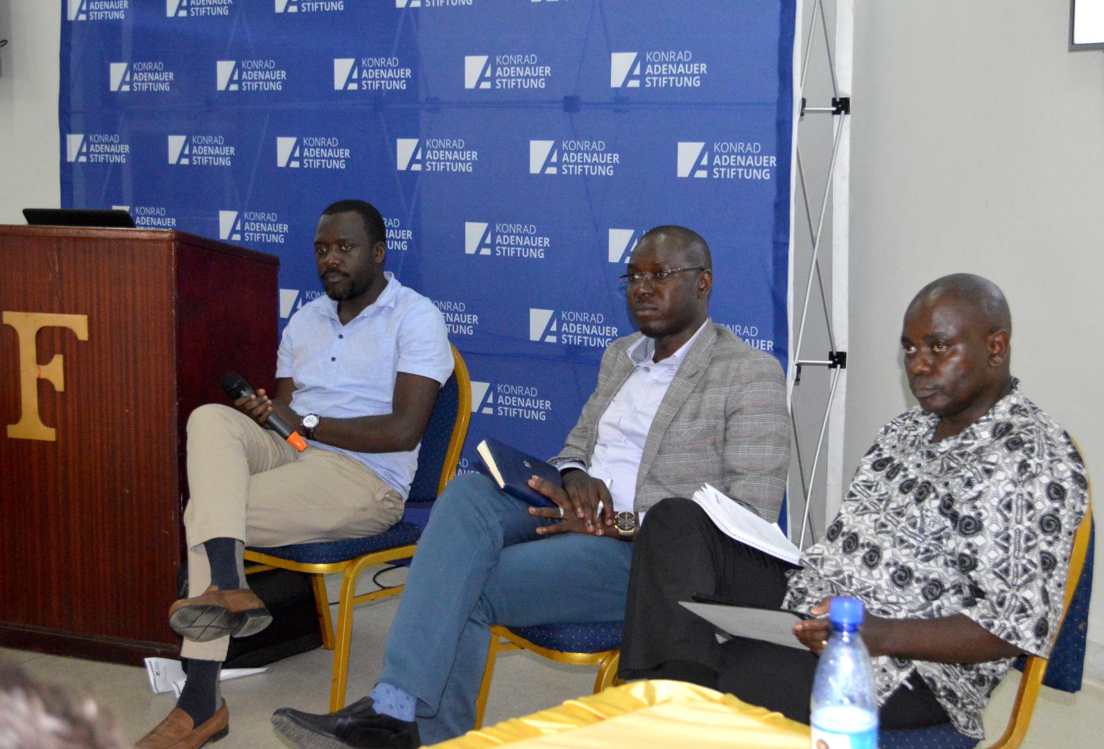 The forum closed with a panel discussion on further opportunities to effectively deliver an SPF in Uganda. Participants were Dr. Muhumuza, Mr. Sajjabi and Mr. Yusuf Kiranda, Director of Centre for Development Alternatives. KAS-UMU scholars actively engaged in the discussion and posed critical questions regarding common trust issues among the public regarding saving funds. Considering the challenges faced by climate change, the scholars were particularly interested in opportunities SPF could offer for people who are active in the agricultural sector, which led to a vital concluding discussion.