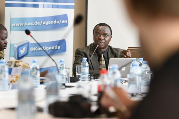 Dr. Ashad Sentongo an expert on genocide and mass atrocity prevention gave the keynote address where explained he in very precise words, that the causes of extremism are not religions but the structural violence that influences the whole society. While the causes often lay in socio-economic or political structures that discriminate certain groups of people, religion becomes a tool for identification and provides a feeling of belonging for those who are discriminated against. In a multi-cultural, multi-religious society like Uganda, people tend to compare each other in terms of their identities. In Uganda ethnic structures are overlaying political structures and therefore are dominating the society. Ashad defines this as structural violence which does not allow people to experience the same benefits as others. Extremism can become one outcome of the permanent confrontation of those different religious, cultural or ethnic groups. Dr. Ashad asked participants to look at these causes of extremism and to run an extra-mile to address the underlying issues. This is needed in order to prevent rather than just react to extremism. In addition he wanted the participants to think about new ways to think and talk about extremism and its prevention as it is obvious that previous traditional strategies have failed to succeed all over the world.