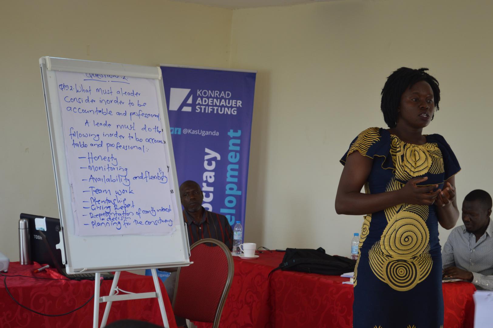 Having one eye on the relevance of ideas for local development, the importance of inspiration and the ability to inspire others had been elevated. This became also clear during a debate about gender and the role of women. After the discussion, Dr. Olum concluded that women’ power relations, access to power and representation in parliament must be improved. The youth leaders agreed on an improvement of education and lobbying for women. With this mission the youth leaders were finally sent back to their daily work, now better prepared for an improved engagement in their local politics.
